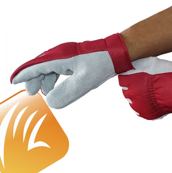 Confeccionado com palma em raspa dorso e punho. Confeccionado com nylon 100% poliéster transpirável e punho de 5 cm.