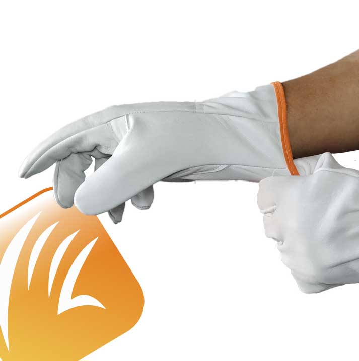 Luva petroleira vaqueta é confeccionada em couro tipo vaqueta com modelo de corte tipo petroleira, com reforço na palma, costura em linha de nylon e acabamento em viés.